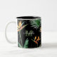 Tropical Foliage Palm Monogram Script Gold Black Two-Tone Coffee Mug