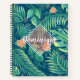 Tropical Foliage Notebook features a design of illustrated tropical leaves in a seamless pattern. These designs include elements of green, blue, red, orange and yellow, tropical leaves, palm fronds, monstera plant and flowers. Products include a template to customize with your name or message. Click on personalize and customize further to change background to any color.