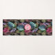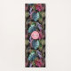 Perfect for yoga at the beach or in a tropical environment, this colorful design features a pattern of tropical foliage that includes palm fronds and monstera leaves in pink, purple, teal, blue and green over a contrasting black background. Personalize with your name and last name monogram for a yoga mat that is uniquely you.