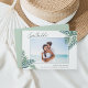 Announce your summer, destination or beach wedding with these tropical chic save the date cards featuring your favorite horizontal or landscape oriented photo. Tropical palm leaves in green watercolor appear at the corners, with "save the date" and your wedding details in an elegant mix of modern hand lettered script and traditional serif typography.