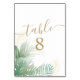 Tropical Foliage Watercolor Green gold Wedding Table Number