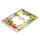 Super chic tropical fruit and foliages with your name and the year to personalize it. Bananas, watermelon wedges, apples, pineapples and avocados are nestled in tropical leaves.