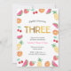 Tropical fruity Pink Gold 3rd Birthday Invitation