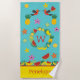 Bright yellow bananas, juicy red watermelon slices, pineapples, flowers and red birds decorate this cute tropical towel. Add your name, family name, boat name or club name on the bottom and add your initial in the middle wreath for a monogram design that is personalized for your beach and pool time!