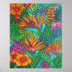Colourful, Stylized painting collage of vibrant tropical flowers by Lisa Lorenz