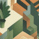 Transform your space with the mesmerizing "Tropical Geometric Escapes" wallpaper, a vibrant and captivating pattern that combines the intricate elegance of geometric design with the lush tranquility of tropical foliage. This design features a harmonious blend of earthy tones, including rich greens, terracotta, and muted creams, creating a warm and inviting atmosphere. The pattern showcases a series of interconnected stairways and abstract architectural elements, reminiscent of an Escher-esque maze, interspersed with a variety of tropical plants like palms and ferns, adding a touch of nature's serenity to the structured composition. Perfect for those who appreciate bold, modern designs with a hint of natural beauty, this wallpaper is ideal for living rooms, bedrooms, or creative spaces. Let the "Tropical Geometric Escapes" wallpaper transport you to a serene and stylish oasis.