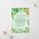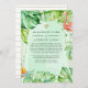 Summer reduced wedding guest list announcement featuring abundant tropical greenery, strelitzia flowers, a flamingo and a gold geometric frame. In these uncertain times, it can happen that you may have to hold a smaller wedding than originally planned. This announcement card will take away the awkwardness and take a load off your mind! You can furthermore provide an option to join you for a virtual ceremony.