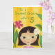 Cute birthday card has a girl with tropical flowers, for a girl who's turning 5