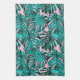 Tropical Girly Pink Turquoise Palm Leaves Kitchen Towel