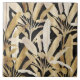 Tropical Gold Banana Leaves Black Pattern Ceramic Tile