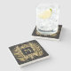 Stylish, elegant faux gold glitter tropical palm tree fronds on a black background with a gold monogram initial inside a black square is featured on this 4 inch stone coaster (SOLD INDIVIDUALLY.) Choose marble, limestone, travertine or sandstone. Adds a beautiful touch to your home decor or give as a housewarming, open house or Christmas gift. DON'T WANT STONE? We've got plastic, paper and glass coaster templates created for you. MATCHING items in our store --> http://bit.ly/2JQANWZ <-