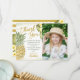 Tropical Gold Glitter Pineapple Birthday Photo Thank You Card