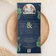 Tropical Gold Monstera Palm Navy QR Code Wedding Tri-Fold Invitation