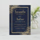 Tropical gold palm tree beach navy blue wedding invitation
