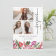 Tropical Graduation Announcement. Celebrate graduation with this beautifully designed announcement, perfect for high school seniors and college graduates. Featuring an elegant gray script on a crisp white background, this sophisticated card showcases three cherished photos on the front, allowing you to share your journey with family and friends. The design is adorned with lush green watercolor palm leaves, monstera leaves, and vivid magenta, pink, and red orchids, ferns, and other tropical florals, creating a vibrant and fresh look that’s perfect for spring and summer graduations. A coordinating pattern on the back completes the design, making this announcement a stunning keepsake that captures the joy and excitement of this milestone moment.