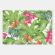 Tropical Green Leaves Pink Orange Flowers Wrapping Paper Sheets