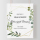 This tropical green leaves rehearsal dinner welcome poster is perfect for a simple rehearsal dinner. The design features hand-painted beautiful green leaves, adorning a gold geometric frame.