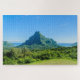 Jigsaw puzzle of Mt Rotui on the tropical green island of Moorea in French Polynesia near Tahiti in the Pacific Ocean.
