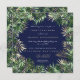 Tropical Green Palm Leaf Frame Blue Nav Sepia Gold Invitation
