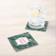 Tropical Green Palm Leaves Coral Monogram Square Paper Coaster