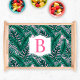 Tropical Green Palm Leaves Pink Monogram Serving Tray