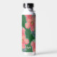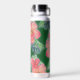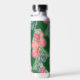 Tropical Green Pink Hibiscus Flower Painting Water Bottle