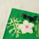 You'll always feel like you're in the tropics with tropical print beach towel. This design has lush green leaves and colorful flowers set on a dark green background.