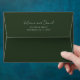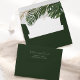 Make a bold statement with this luxurious custom envelope, featuring a captivating tropical botanical design. The deep green exterior opens to reveal a vibrant inner lining adorned with lush green leaves and gleaming gold accents, creating an exotic and sophisticated reveal. This stunning design ensures your mailing makes an unforgettable impression, perfect for a modern, destination-inspired celebration.