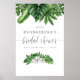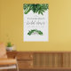 Trendy green and white watercolor tropical leaves and white magnolias bridal shower welcome poster.