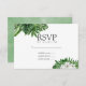 Trendy sage green and white watercolor tropical leaves and white magnolias wedding RSVP cards.