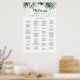 This tropical greenery white alphabetical seating chart is perfect for a destination wedding. The design features green palm leaves bouquets with white lovely flowers.