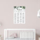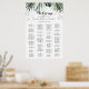 This tropical greenery white alphabetical seating chart is perfect for a rustic wedding. The design features green palm leaves bouquets with lovely white flowers.