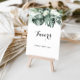 This tropical greenery white floral favors sign is perfect for a rustic wedding or bridal shower. The design features green palm leaves bouquets with white lovely flowers.