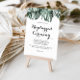 This tropical greenery white floral unplugged ceremony sign is perfect for a rustic wedding or bridal shower. The design features green palm leaves bouquets with white lovely flowers.