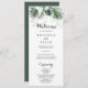 This tropical greenery white floral wedding program is perfect for a destination wedding. The design features green palm leaves bouquets with white lovely flowers.