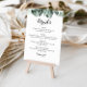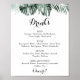This tropical greenery white wedding drinks menu sign is perfect for a rustic wedding. The design features green palm leaves bouquets with white lovely flowers.