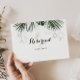 This tropical greenery white wedding reserved sign is perfect for a destination wedding. The design features green palm leaves bouquets with white lovely flowers.