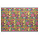 An abstract floral pattern in bright shades of green, gold and magenta pink.