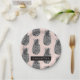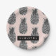 Tropical Grey & Pink Pineapple Pattern With Name Paper Plates