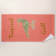 I was so excited to get this towel! It was a gift for my sister's 50th birthday surprise in Key West! The towel was excellent quality, better than I expected! She loved it! Colors were vibrant, the towel was extra large, attached is a photo, my husband is 6' tall ... so you can see how big it is compared to his height. Thank you ZAZZLE for an amazing, gorgeous product!