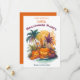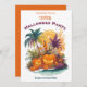 Tropical Halloween party invitation with pampkin and palms. Vibrant colors
