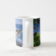 This ceramic coffee mug is shown with a photo print of a beautiful ocean scene in Hawaii.