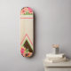 Dd brand Hawaiian inspired skateboard, with graphic artwork of pastel tropical flowers, on a wood looking background. Customize to add your own text.