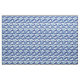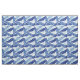 Hawaiian shirt style fabric patterned with dark blue tropical palm leaves on white