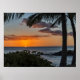A spectacular tropical Hawaiian sunset is completed with palm trees and the sun setting on the horizon. This beautiful photograph is suitable for framing and hanging in your home or office.