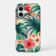 Tropical Hibiscus and Palm Leaves Pattern iPhone Case