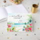 Capture the essence of your beach wedding with our Tropical Hibiscus Beach Destination Watercolor Wedding Guest Book! This exquisite guest book features a stunning watercolor painting of a tropical island, complete with a serene beach, swaying palm trees, and a lush landscape. Adorned with vibrant hibiscus flowers in shades of orange-red and pink, this guest book is the perfect way to preserve the heartfelt messages and memories from your special day. A beautiful keepsake that brings the enchanting ambiance of your tropical celebration to life, making it a treasured memento for years to come.