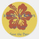 This cute modern design, called Tropical Hibiscus, would be a cool way to set the tone for your modern but unique wedding or event. The background is mustard yellow with a rust colored border. At the top in the center is a fun hibiscus flower graphic painted in the rusty red color. What a wonderful way to celebrate the tropics, the beach, or just the warmth of the colors. This set has invitations, save the date cards, response cards, thank you cards, table number tent cards, envelope seals, wine labels, binders, return address labels and many more day-of wedding stationery pieces, favors, and gifts available. Use the envelope seal stickers for any of your DIY gifts - these are available in both large and small sizes! All elements are printed on our high quality products, they do not include any real gold, jewels, embossing, or other textile elements. All designs are copyright Noteable Expressions, Inc. All rights reserved.