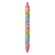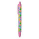 Colorful ballpoint pen covered in scattered tropical hibiscus flowers in pink, orange, and yellow.