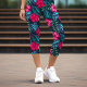 Embrace island vibes with these vibrant capri leggings featuring a lush tropical floral print. Blooming hibiscus flowers in shades of pink and green create a cheerful and exotic look, perfect for adding a touch of paradise to your everyday style. Made from soft, stretchy fabric, they're comfortable enough for lounging or activewear.